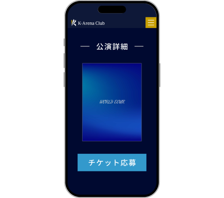 会員専用ページの「TICKET」より申し込みが可能です。先着の場合もあるので、詳細をご確認ください。