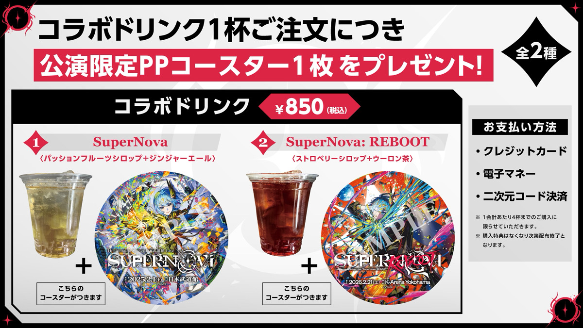 2/21(土) Hoshimachi Suisei Live “SuperNova: REBOOT”の開催を記念して、コラボドリンクの販売が決定いたしました!